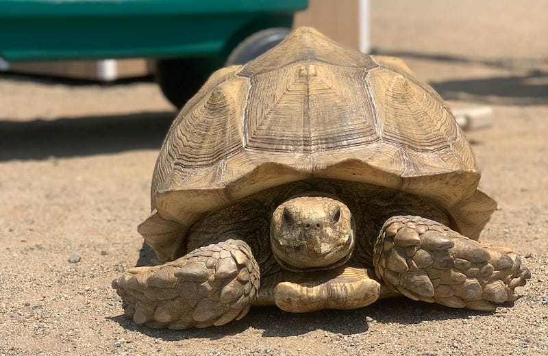 It's official! We have our first ever shelled rescue. Weighing in at 100 pounds, this 15 year old sulcata tortoise is now calling Lions Tigers & Bears their forever home.