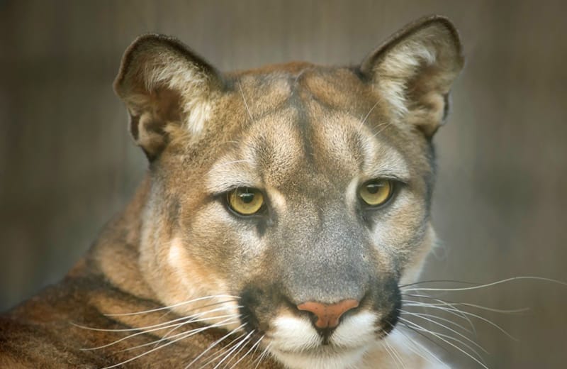 Conrad was a young male mountain caught in late 2007 (and tagged "502") by California Department of Fish & Wildlife officials while roaming near an elementary school in Redlands, California. Lions Tigers & Bears rescued him so that he would not be euthanized. Because we had no enclosure for him at the time, he had to live in quarantine for several months while we constructed his habitat.After a vigorous health examination, Conrad was finally moved to his new home. At first, he tended to spend most of his time inside his "cave," venturing outside only at night as mountain lions are naturally timid. With the patient encouragement of his caregivers, who spent hours each day talking and reading to him, he soon began to leave his cave to explore his new enclosure. Soon he was sleeping in his hammock, enjoying the huge logs he claws to keep his nails trim, playing with his rubber ball, and relaxing in his waterfall pool. However, he's still rather shy and emerges mostly at night and early in the morning.