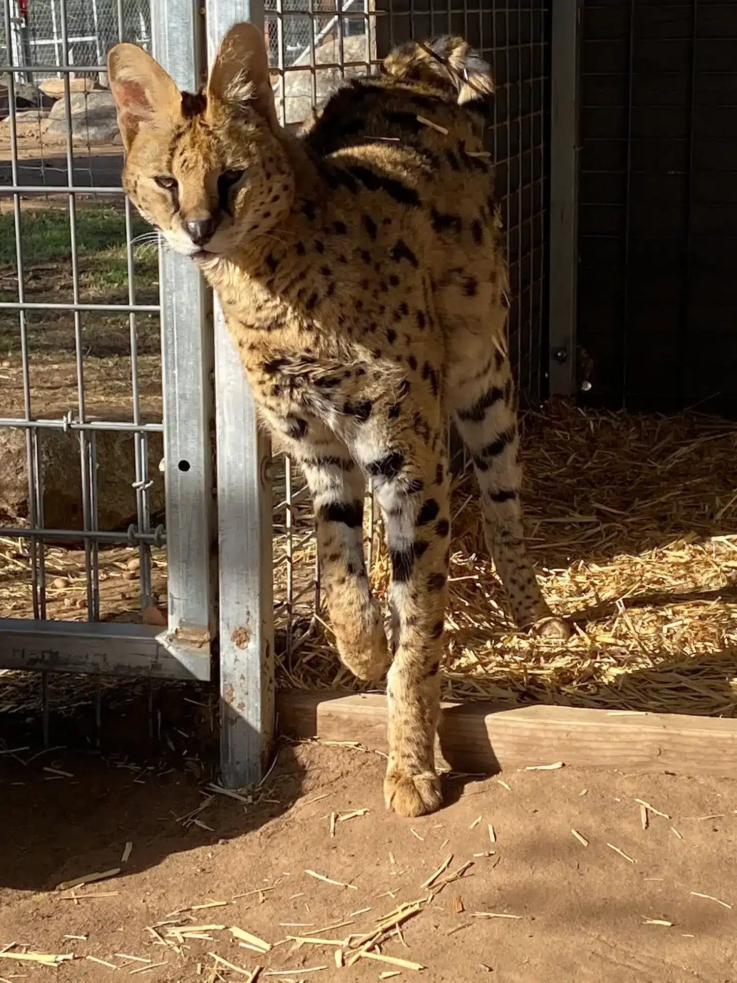 Denali's life began as a privately-owned pet and later rescued from an unaccredited sanctuary. He was originally purchased by a man who claimed to have acquired a litter of Serval kittens from a roadside zoo. As Denali rapidly grew, reaching double the size of a domestic cat, his family soon realized that they could no longer manage him in their home. Consequently, they made the decision to place him at the Spirit of the Hills Sanctuary in South Dakota when he turned one year old.