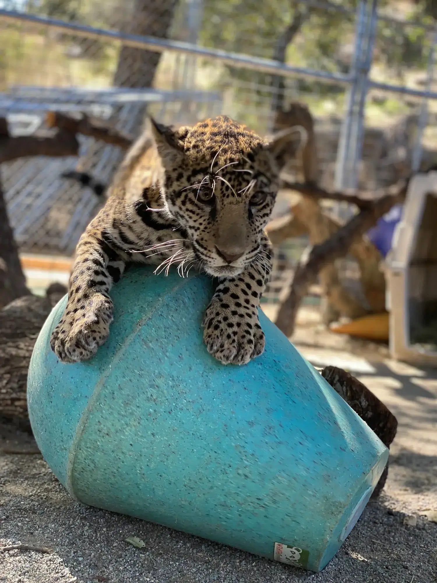 Eddie officially became a part of our Lions Tigers & Bears family shortly after. As a healthy young jaguar, he is thriving in our sanctuary environment and we are relieved to be able to provide him with a permanent lifetime home at Lions Tigers & Bears. Eddie will need a lifetime of care, including a species-specific diet, enrichment and veterinary care as he continues to grow and develop.
