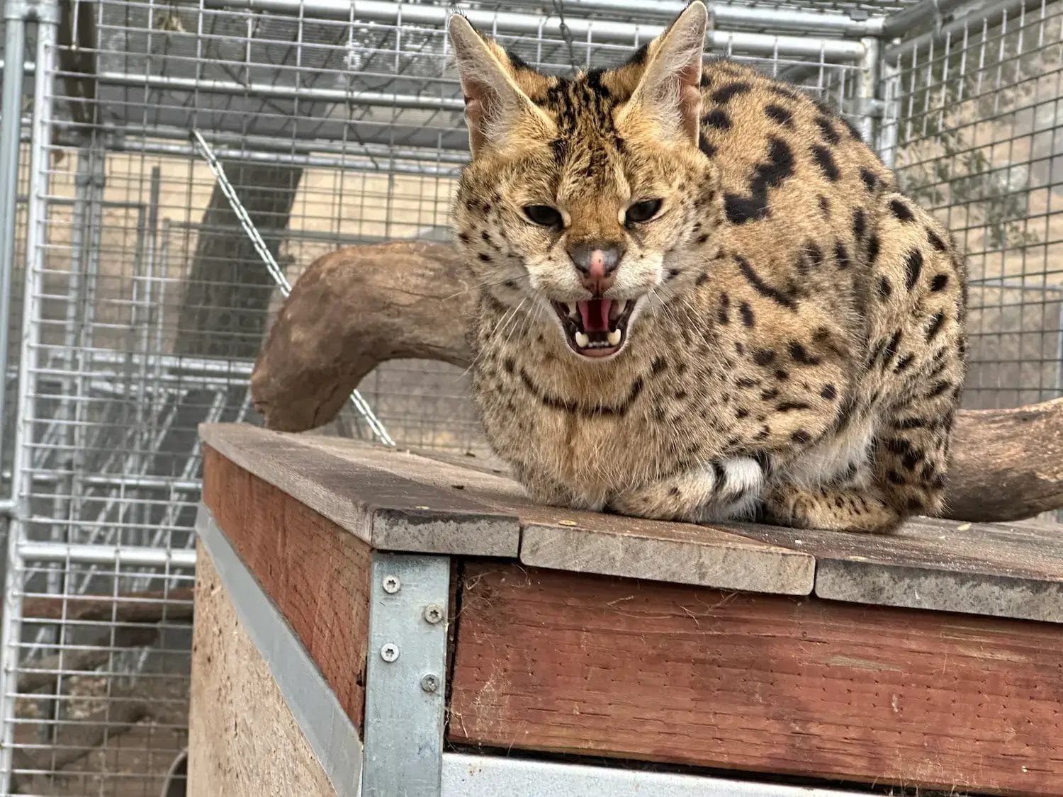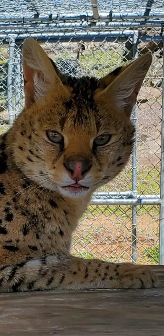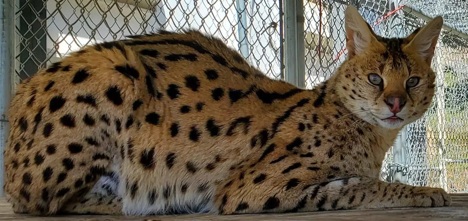 Amid these challenges, she began a heartfelt plea for assistance throughout the country, desperately seeking a facility that could provide a home for Junior and Miss Kitty. Fortunately, Lions Tigers & Bears received the call for help and promptly leaped into action to rescue these two servals.