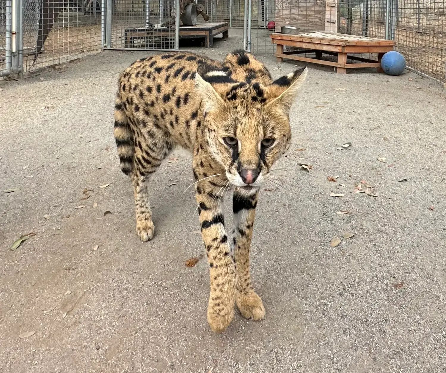 LTB responded to the call and managed to rescue all three cats, transporting them back to the sanctuary. However, it was a bittersweet beginning for these feline friends. Eli, an elderly serval who was already dealing with kidney disease, unfortunately passed away a few months after his arrival at LTB. Given her age and condition, Savannah, also an elderly serval, requires specialized care to ensure her comfort and overall well-being, underscoring the importance of providing a safe and loving environment for animals in need.